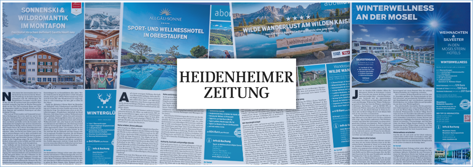 Die Heidenheimer Zeitung gewährt uns Sonderkonditionen, sodass wir Ihnen speziell für Ihr Angebot, einen halbseitigen Bericht im Wochenend-Magazin zum Sonderpreis anbieten können. Der Artikel mit Ihrer Präsentation wird auf der Seite „Abomax“, einer Spezialseite mit Angeboten für Abonnenten, veröffentlicht.