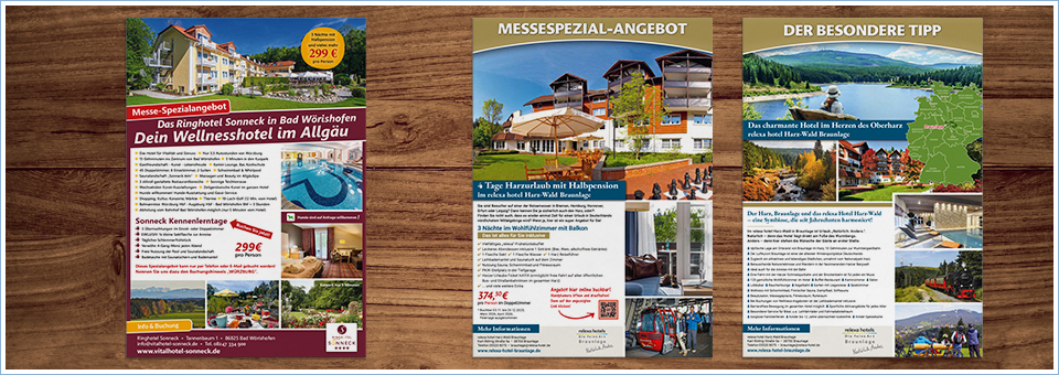 Und weil das so ist, bieten wir diesen Betrieben, die keine eigenen Prospekte mehr haben, eine Prospekterstellung an. Wir texten, gestalten und drucken Ihren Flyer, so dass Sie wieder Prospekte haben. Und diese Prospekte bringen Ihre Leistungen auf den Punkt – passgenau und maßgeschneidert.