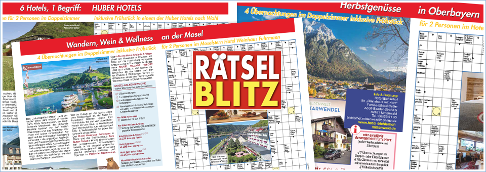 Das bunte Rätselheft „Rätsel Blitz“ ist gespickt mit einer Menge attraktiver Preise und Bargeld sowie einer Vielzahl an abwechslungsreichen Rätselarten.