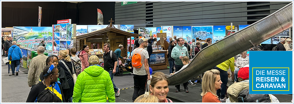 Auf 14.800 qm bietet Thüringens größte Reisemesse tradionell Urlaub und Abenteuer total. Die Reisen & Caravan ist eine Reisemesse für die ganze Familie zu den Themen Urlaub, Reisen und Caravaning. Wellness-Reisen, Abenteuer- und Bildungsurlaub sowie der Urlaub in den schönsten Regionen Deutschlands liegen ganz vorn in der Publikumsgunst. Die 34. Reisen & Caravan findet von Donnertag bis zum Sonntag statt und belegt auch 2025 wieder das gesamte Gelände in 3 Hallen der Messe Erfurt.